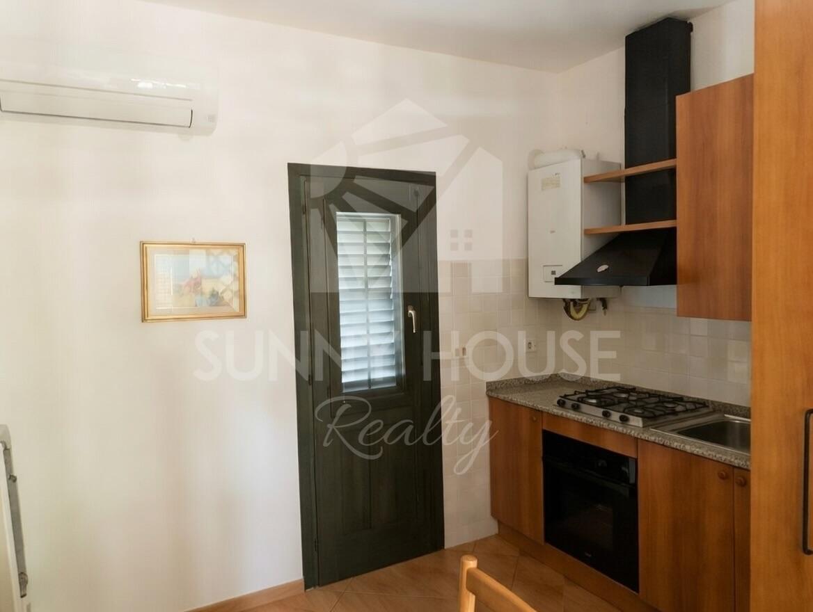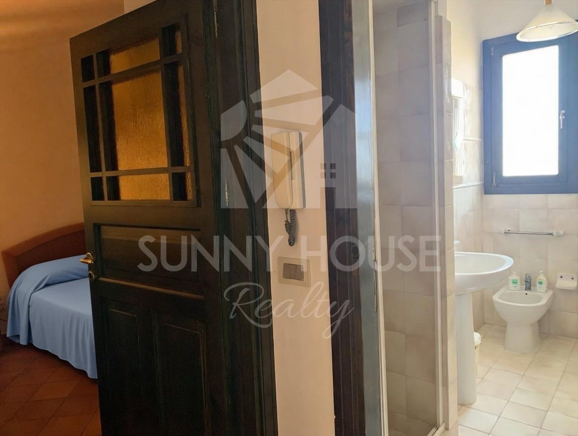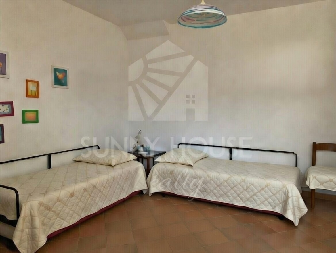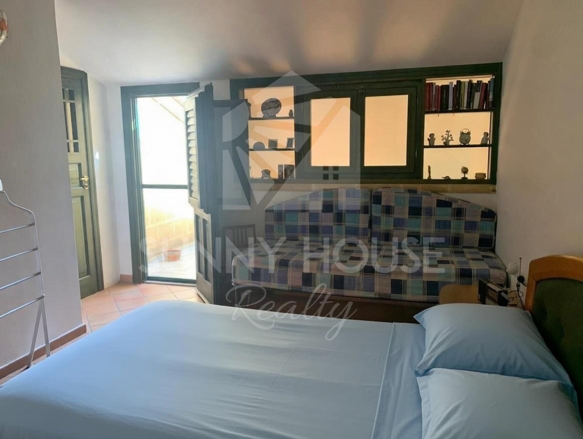 The first floor hosts a double bedroom with air conditioning and radiator, a bathroom, and a small sea-view terrace. From here, you can also admire the residence’s characteristic amphitheater through a distinctive round porthole-style window, which gives the room a unique and charming touch.