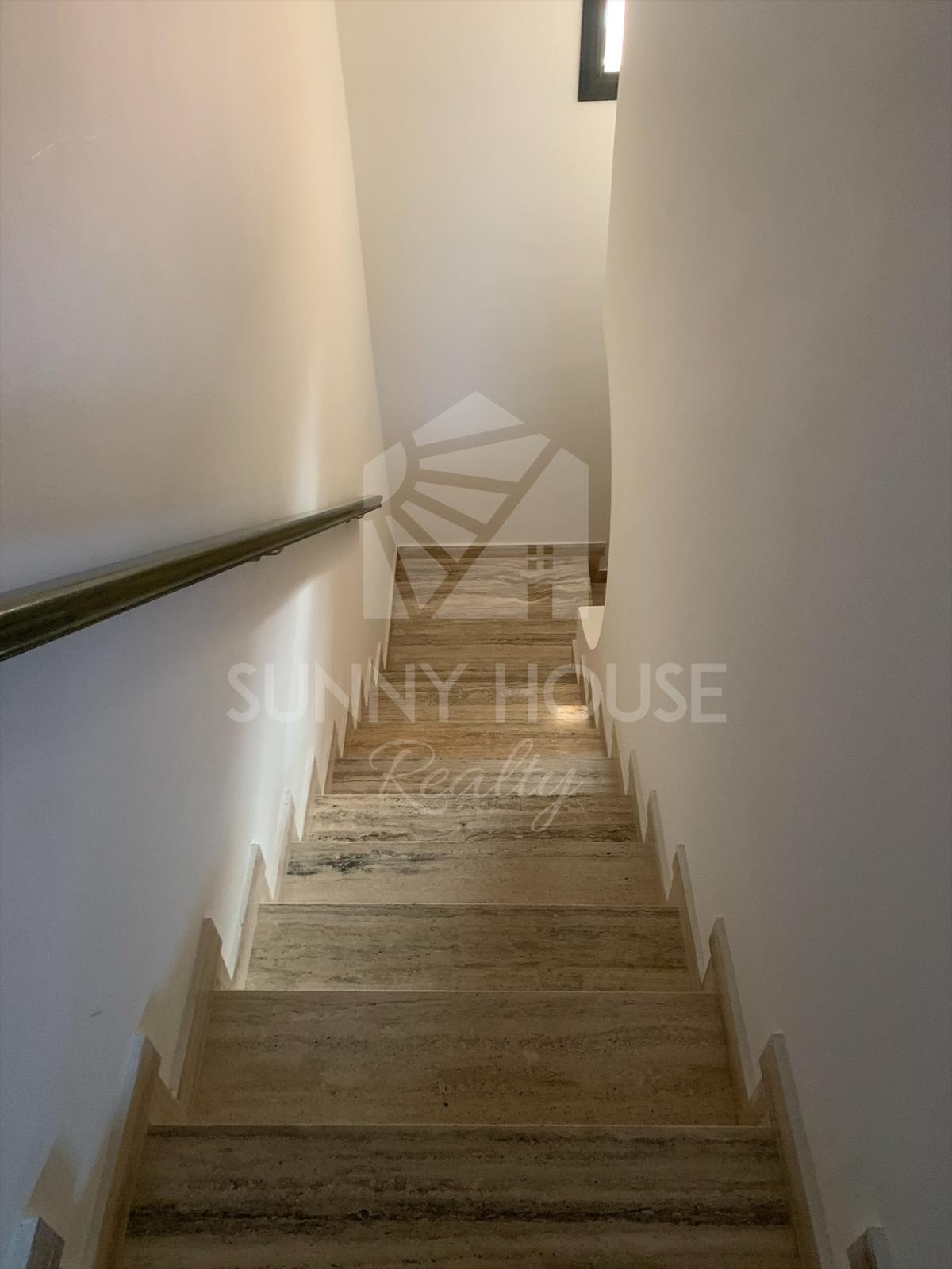 The 122 sqm villa is arranged over multiple levels and features high-quality finishes and welcoming interiors.