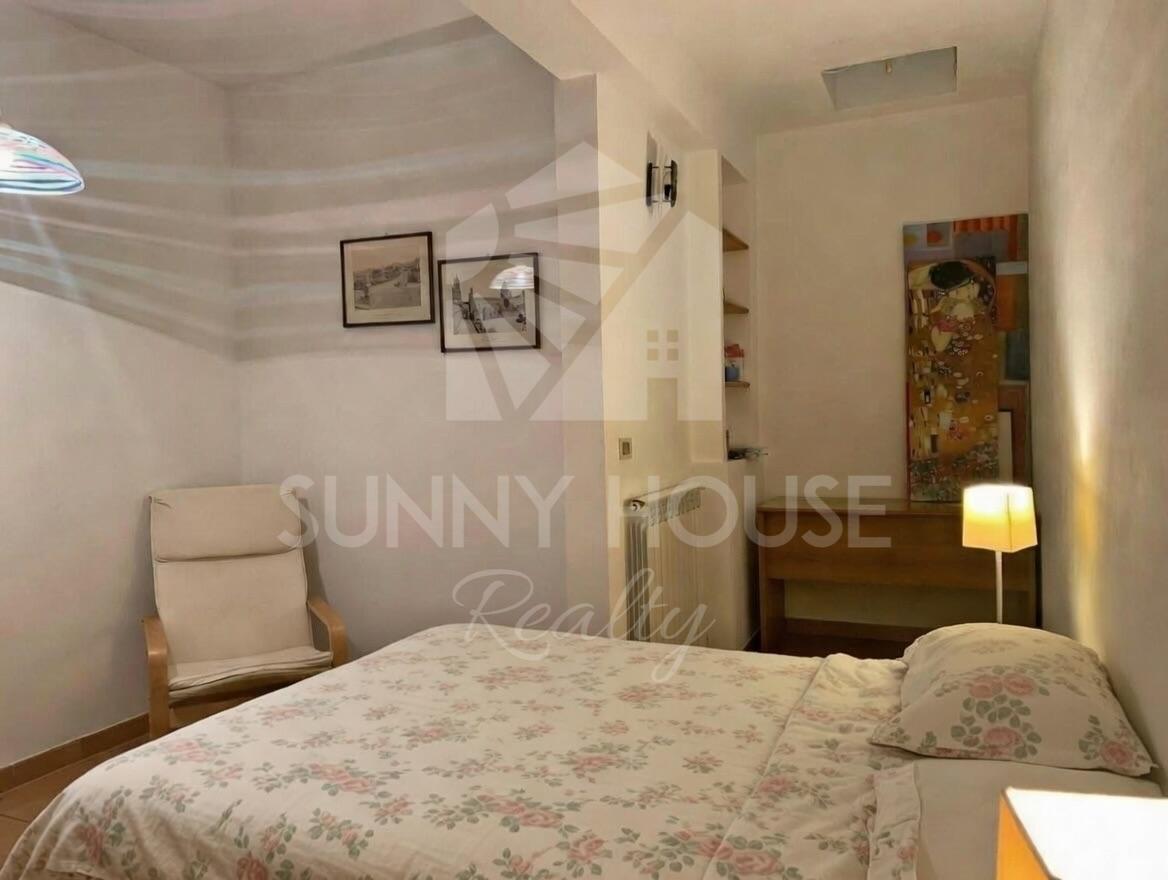 On the ground floor, there is a spacious open-plan living area with kitchen, offering direct access to two terraces: one equipped for outdoor barbecues and the other designed as a relaxing lounge area. The open space is fitted with air conditioning and a radiator, ensuring year-round comfort. This level also includes a bathroom, an entrance with direct access to the outdoor areas, and a designated parking space.